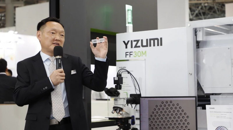 在全球发布会上,伊之密全球首发的FF30M微型精密医疗专用注塑机成为焦点。这款专为医疗行业打造的设备,以微米级精密注塑技术,为微流控芯片提供超高精度成型方案。