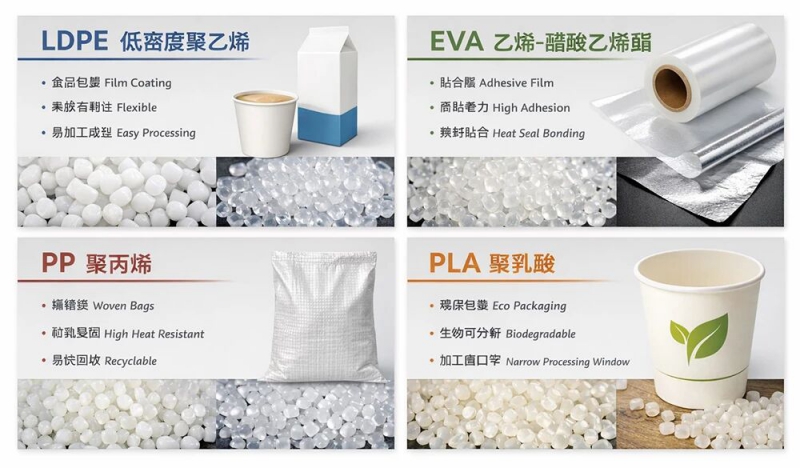 常见的有四种塑料——LDPE/EVA/PP/PLA